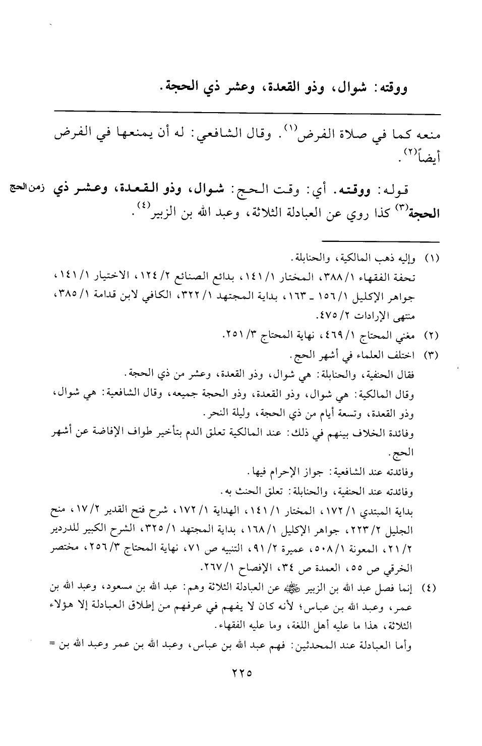 قوله: ووقته. أي: وقت الحج: شوال، وذو القعدة، وعشر ذي الحجة (¬٣) كذا روي عن العبادلة الثلاثة، وعبد الله بن الزبير (¬٤).
