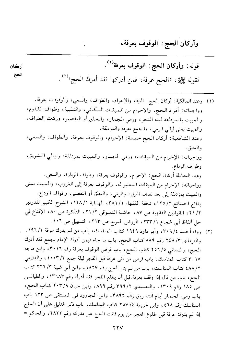 (¬١) وعند المالكية: أركان الحج: النية، والإحرام، والطواف، والسعي، والوقوف، بعرفة.