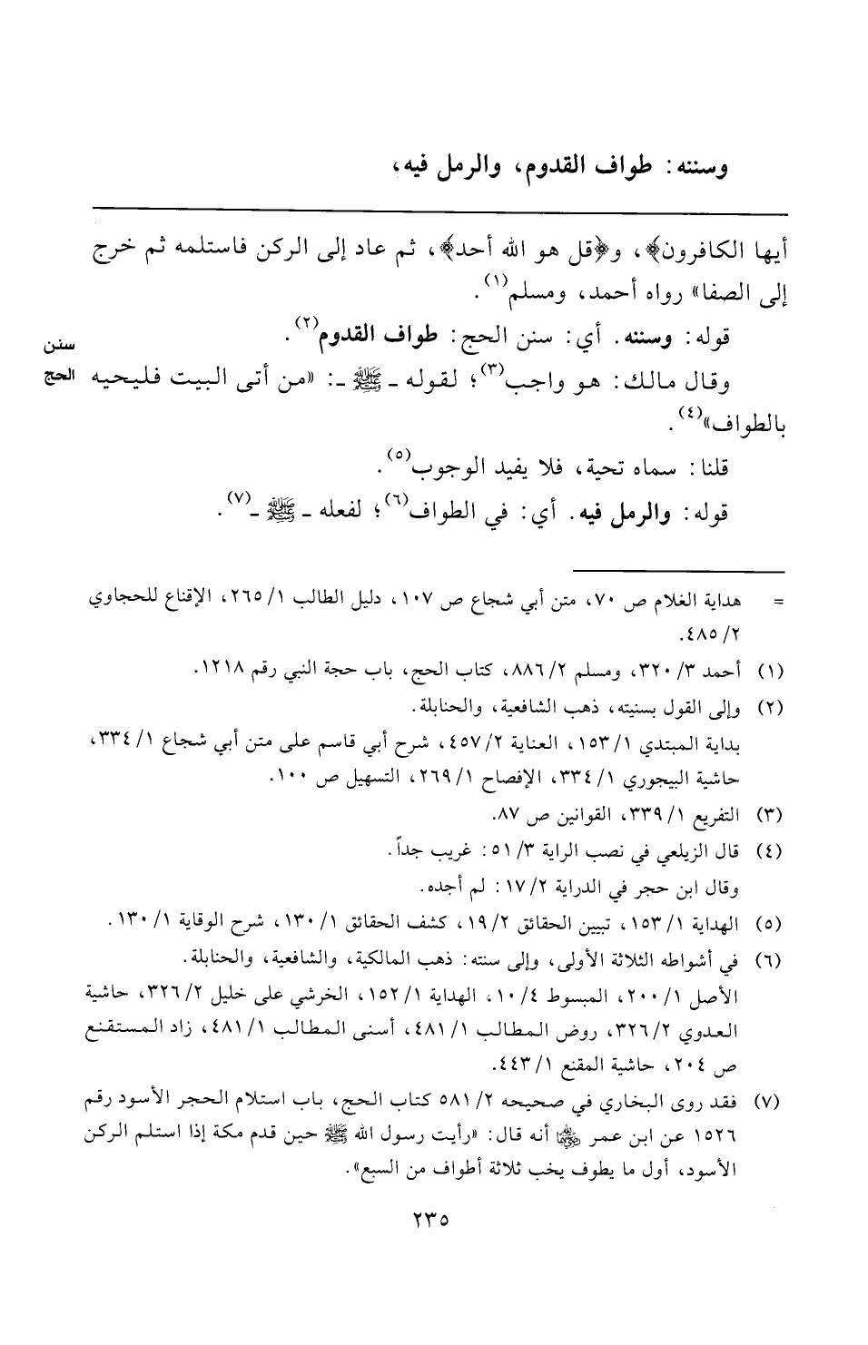 (¬٦) في أشواطه الثلاثة الأولى، وإلى سنته: ذهب المالكية، والشافعية، والحنابلة.