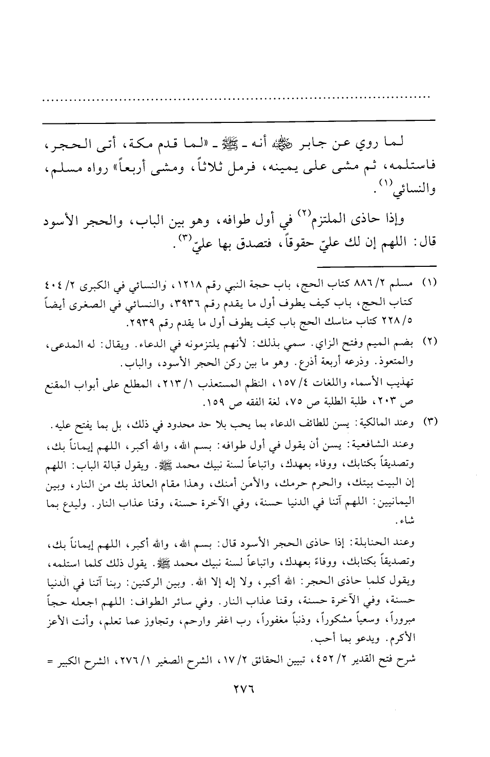 (¬١) مسلم ٢/ ٨٨٦ كتاب الحج، باب حجة النبي رقم ١٢١٨، والنسائي في الكبرى ٢/ ٤٠٤ كتاب الحج، باب كيف يطوف أول ما يقدم رقم ٣٩٣٦، والنسائي في الصغرى أيضًا ٥/ ٢٢٨ كتاب مناسك الحج باب كيف يطوف أول ما يقدم رقم ٢٩٣٩.