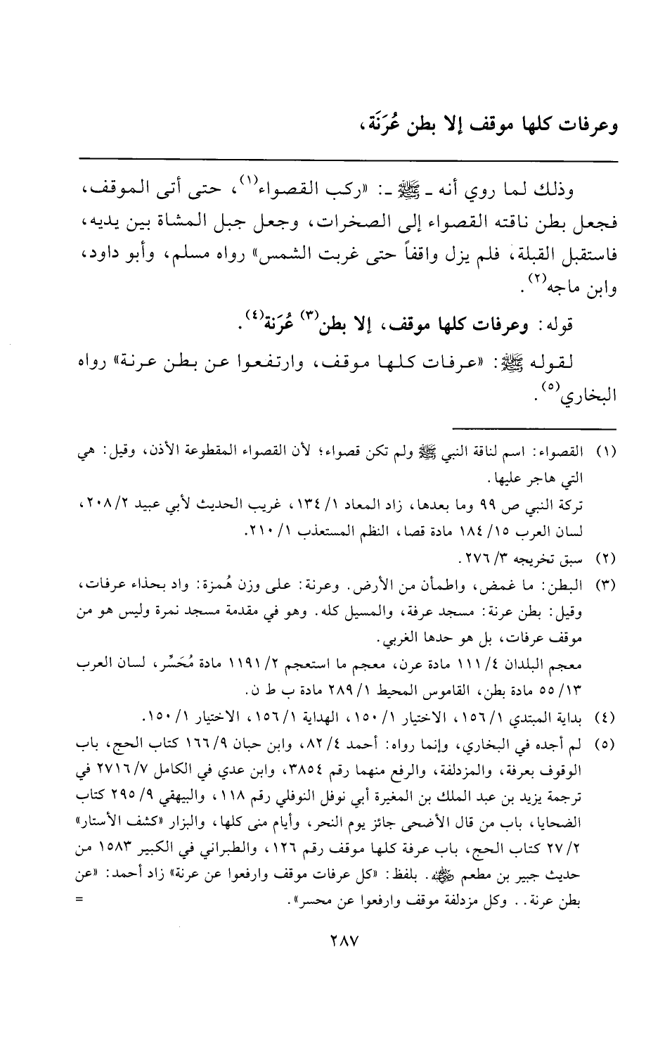 معجم البلدان ٤/ ١١١ مادة عرن، معجم ما استعجم ٢/ ١١٩١ مادة مُحَسِّر، لسان العرب ١٣/ ٥٥ مادة بطن، القاموس المحيط ١/ ٢٨٩ مادة ب ط ن.