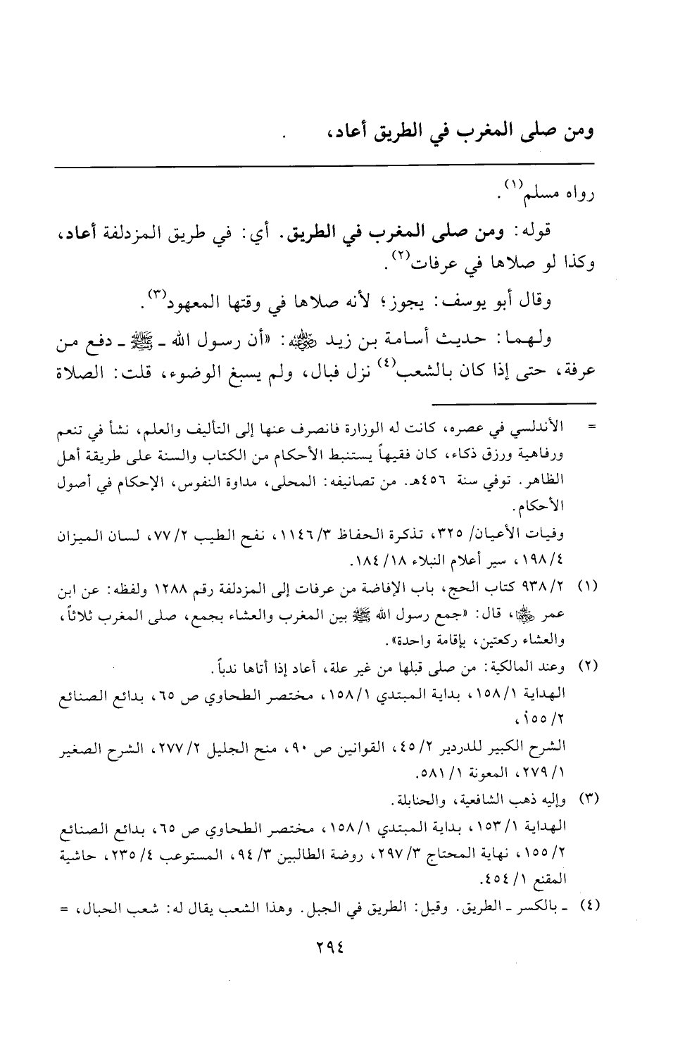 ومن صلى المغرب في الطريق أعاد،
