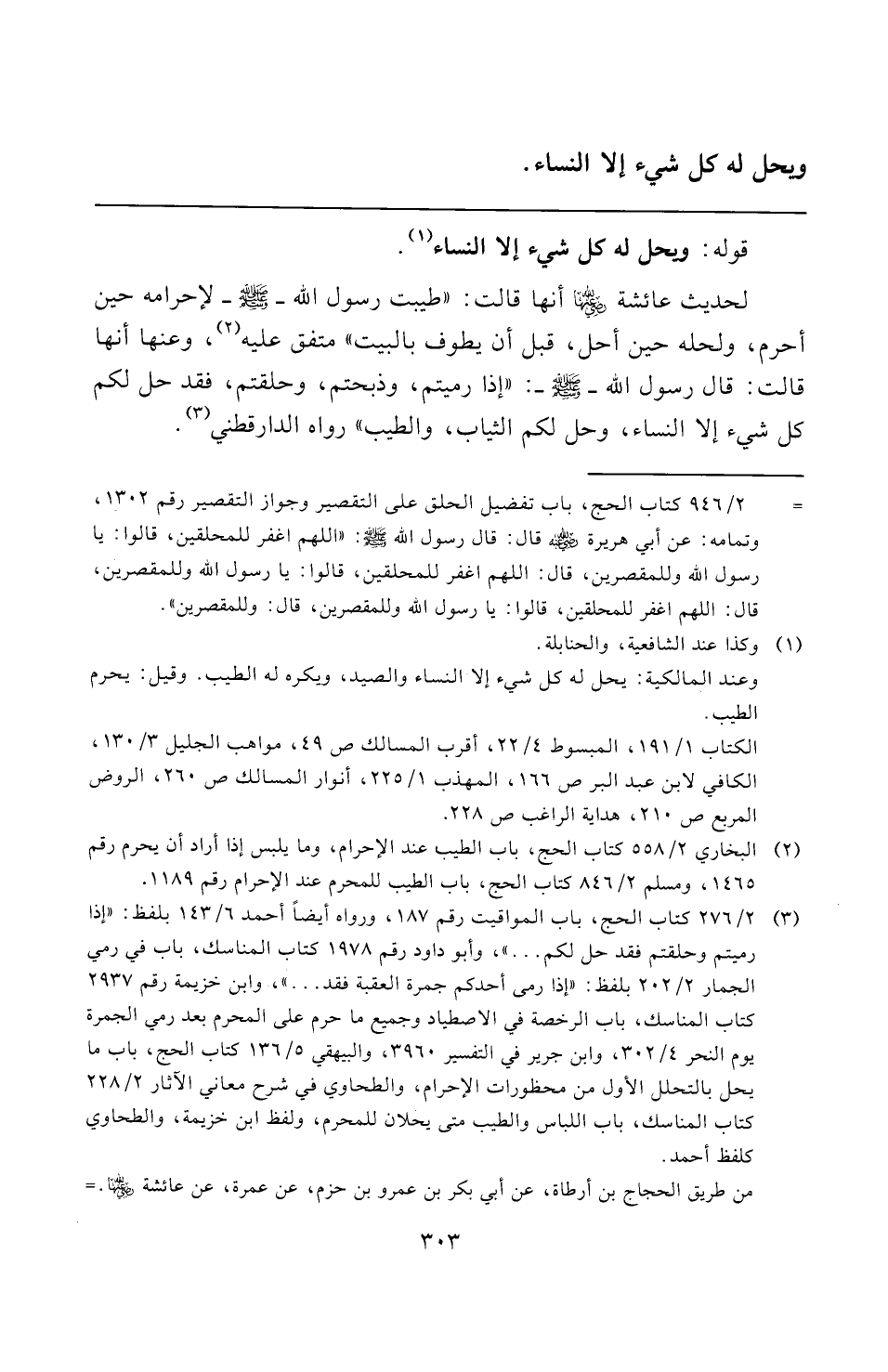(¬٢) البخاري ٢/ ٥٥٨ كتاب الحج، باب الطيب عند الإحرام، وما يلبس إذا أراد أن يحرم رقم ١٤٦٥، ومسلم ٢/ ٨٤٦ كتاب الحج، باب الطيب للمحرم عند الإحرام رقم ١١٨٩.