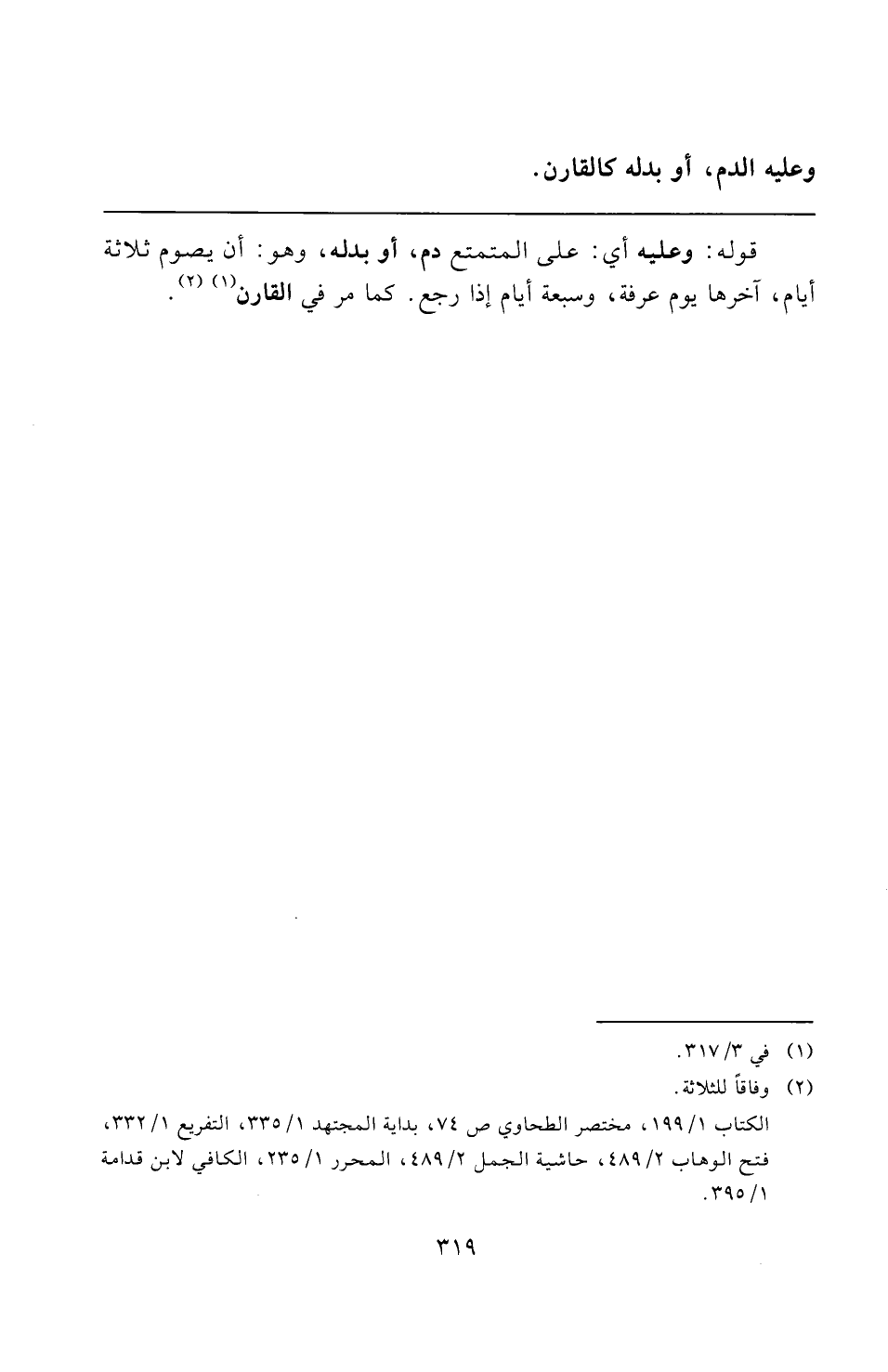 الكتاب ١/ ١٩٩، مختصر الطحاوي ص ٧٤، بداية المجتهد ١/ ٣٣٥، التفريع ١/ ٣٣٢، فتح الوهاب ٢/ ٤٨٩، حاشية الجمل ٢/ ٤٨٩، المحرر ١/ ٢٣٥، الكافي لابن قدامة ١/ ٣٩٥.