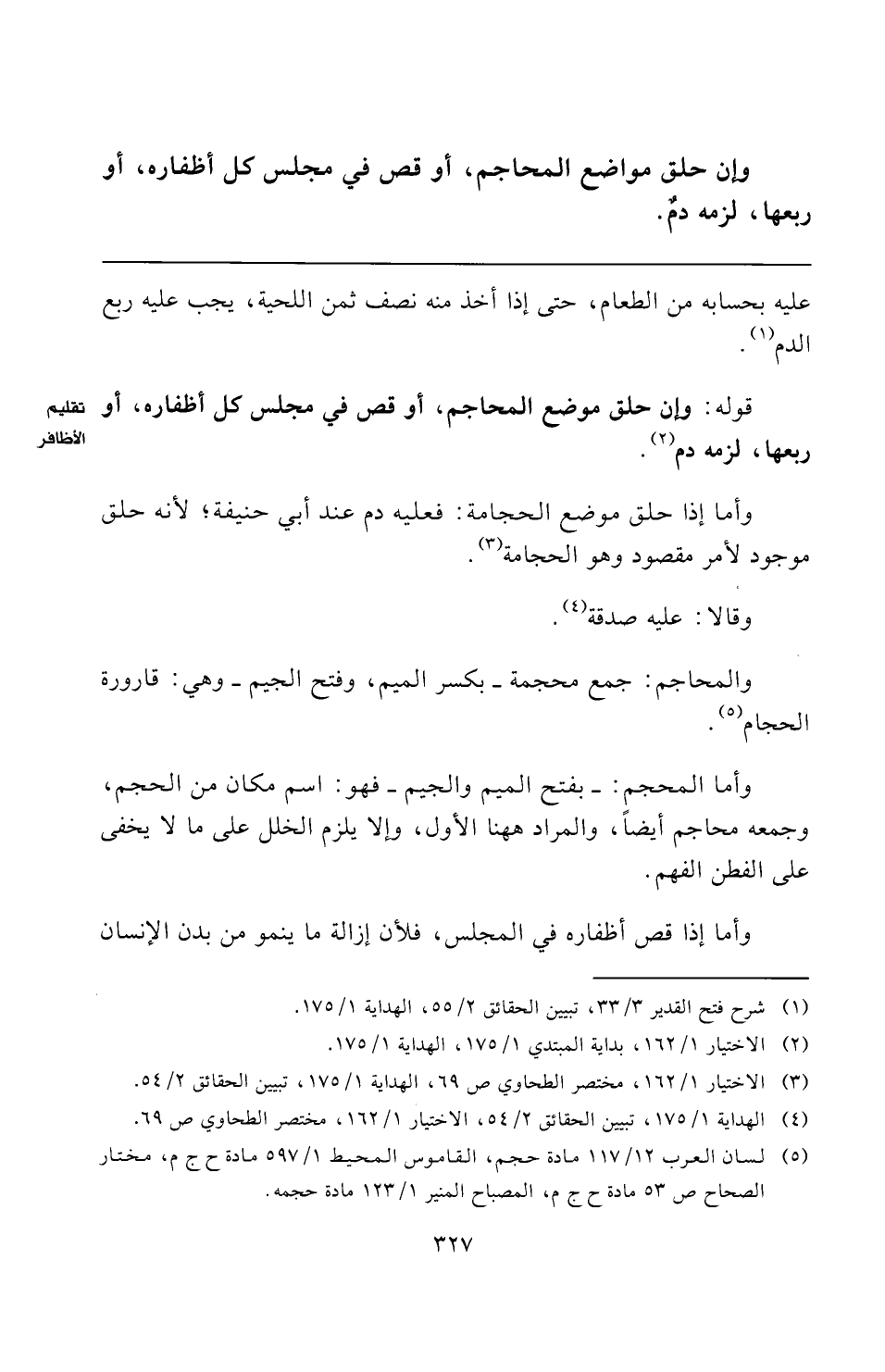 (¬٥) لسان العرب ١٢/ ١١٧ مادة حجم، القاموس المحيط ١/ ٥٩٧ مادة ح ج م، مختار الصحاح ص ٥٣ مادة ح ج م، المصباح المنير ١/ ١٢٣ مادة حجمه.