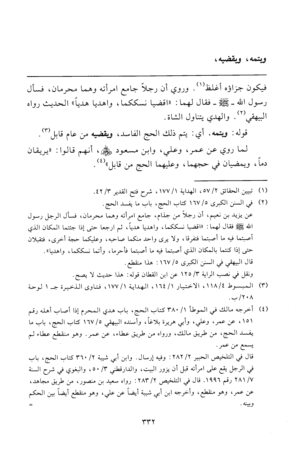(¬٢) في السنن الكبرى ٥/ ١٦٧ كتاب الحج، باب ما يفسد الحج.