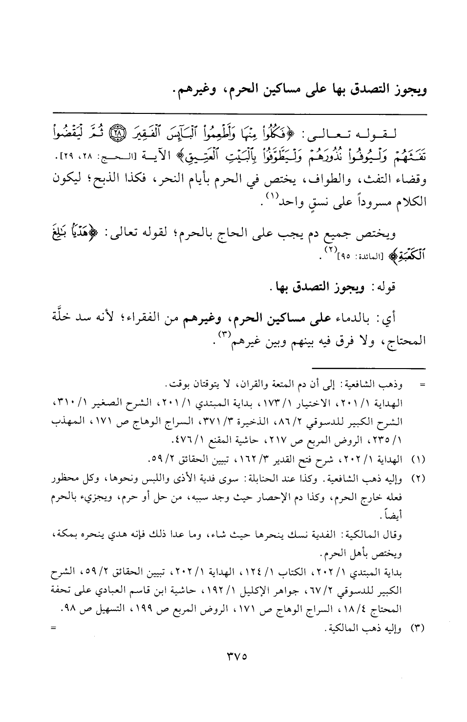 أي: بالدماء على مساكين الحرم، وغيرهم من الفقراء؛ لأنه سد خلَّة المحتاج، ولا فرق فيه بينهم وبين غيرهم (¬٣).