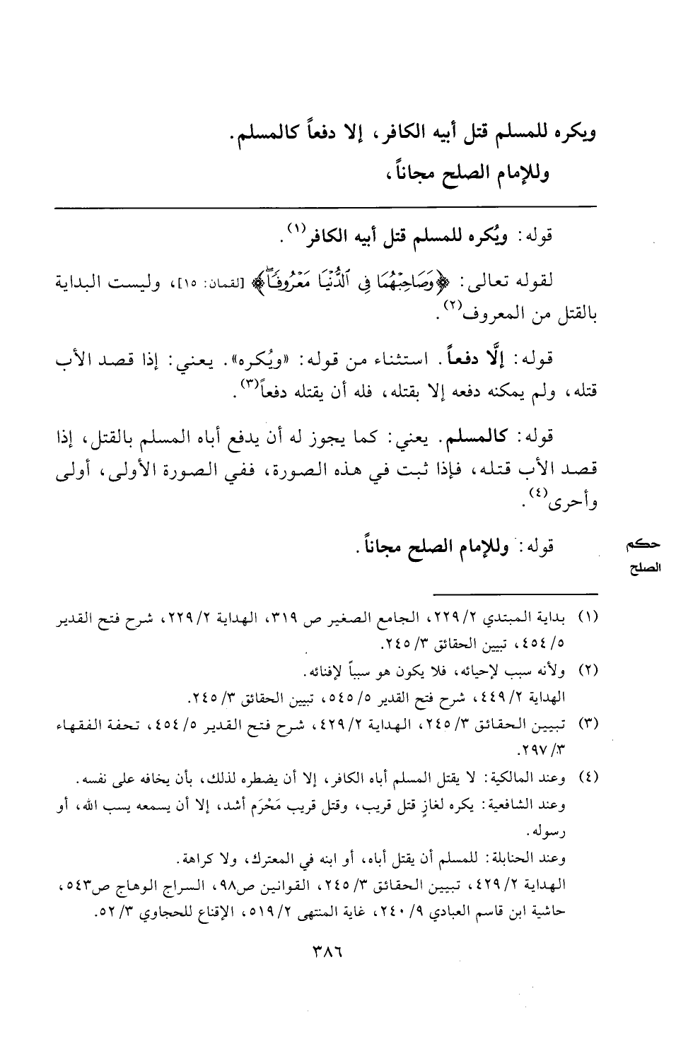 (¬٣) تبيين الحقائق ٣/ ٢٤٥، الهداية ٢/ ٤٢٩، شرح فتح القدير ٥/ ٤٥٤، تحفة الفقهاء ٣/ ٢٩٧.