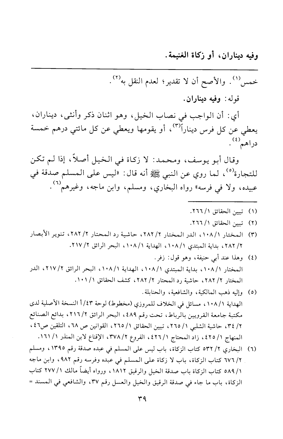 (¬١) تبيين الحقائق ١/ ٢٦٦.