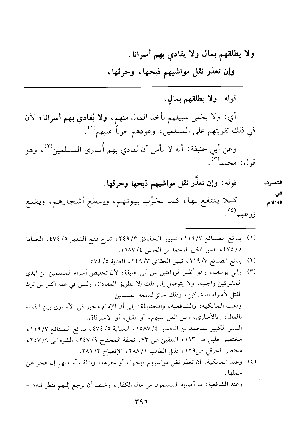 (¬١) بدائع الصنائع ٧/ ١١٩، تبيين الحقائق ٣/ ٢٤٩، شرح فتح القدير ٥/ ٤٧٤، العناية ٥/ ٤٧٤، السير الكبير لمحمد بن الحسن ٤/ ١٥٨٧.