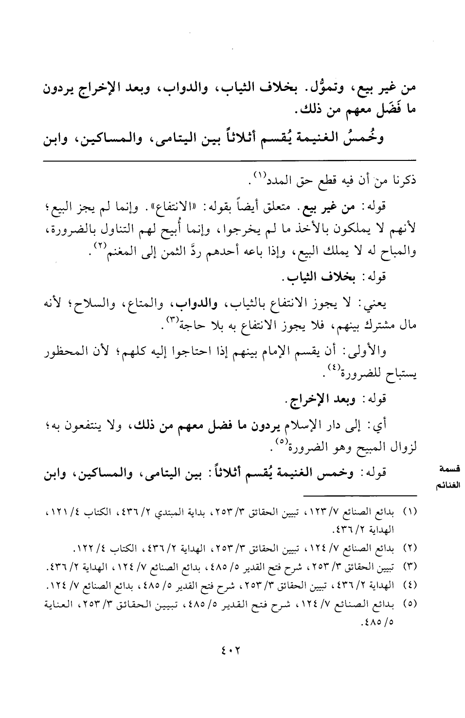 (¬٥) بدائع الصنائع ٧/ ١٢٤، شرح فتح القدير ٥/ ٤٨٥، تبيين الحقائق ٣/ ٢٥٣، العناية ٥/ ٤٨٥.