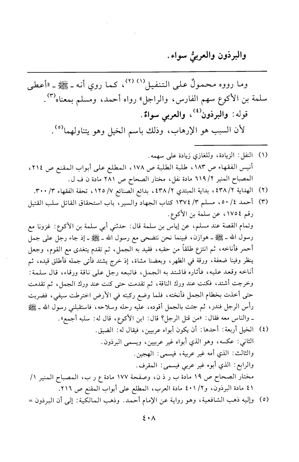 (¬٣) أحمد ٤/ ٥٠، مسلم ٣/ ١٣٧٤ كتاب الجهاد والسير، باب استحقاق القاتل سلب القتيل رقم ١٧٥٤، عن سلمة بن الأكوع.