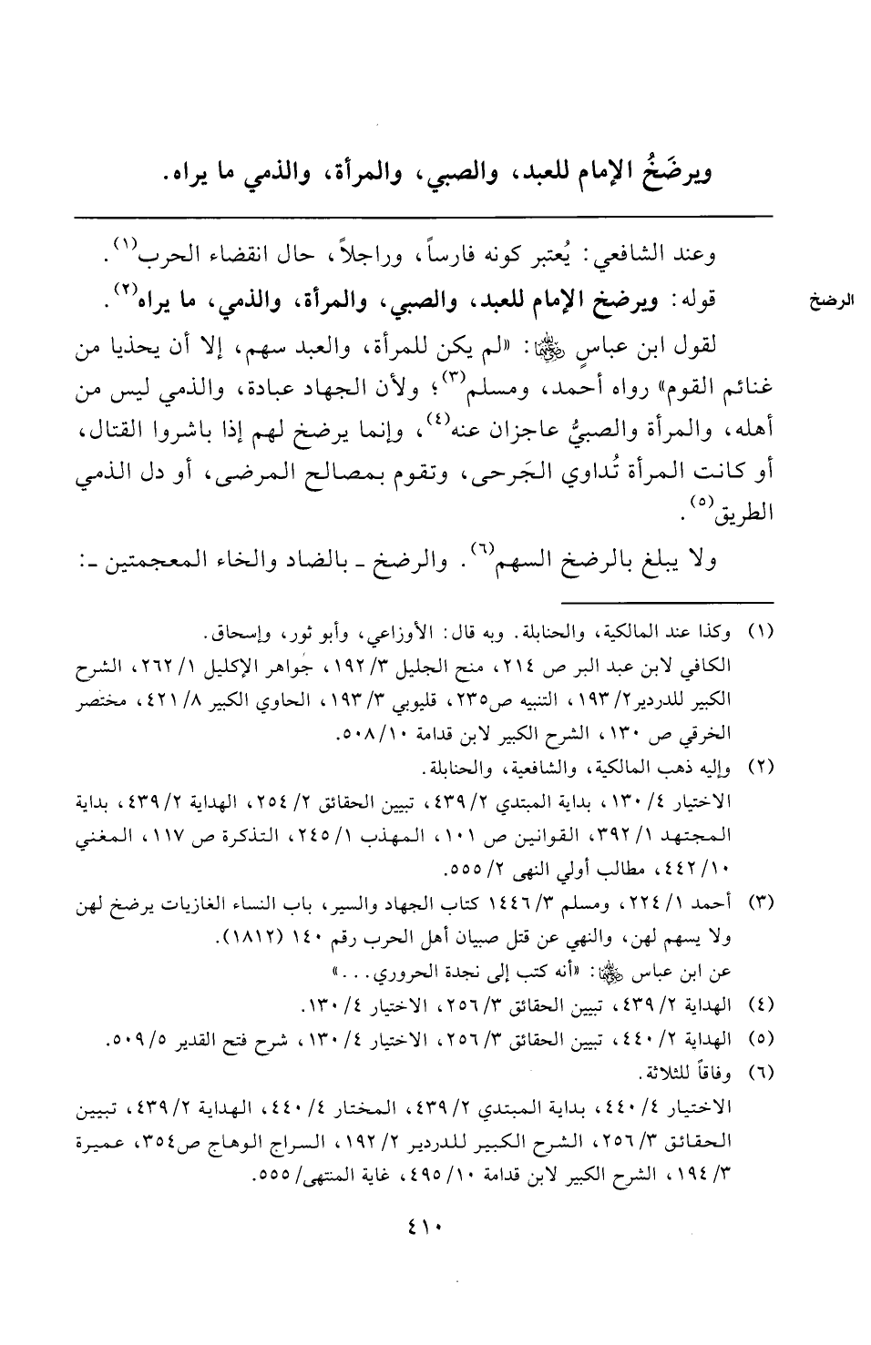 ولا يبلغ بالرضخ السهم (¬٦). والرضخ -بالضاد والخاء المعجمتين-:
