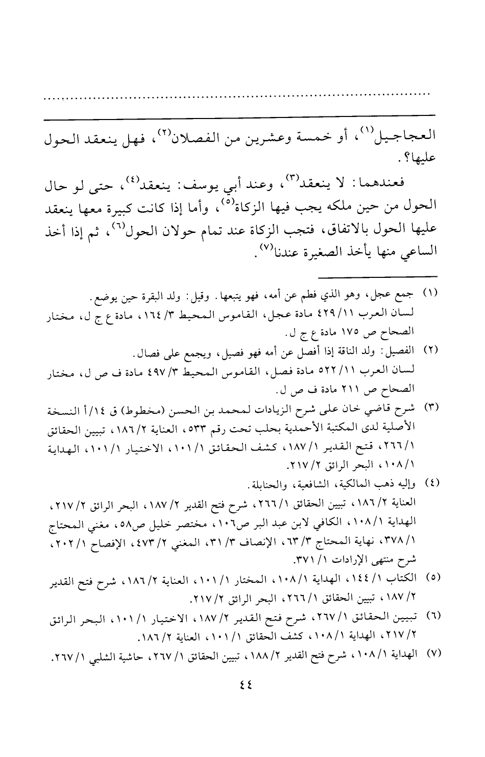 (¬٦) تبيين الحقائق ١/ ٢٦٧، شرح فتح القدير ٢/ ١٨٧، الاختيار ١/ ١٠١، البحر الرائق ٢/ ٢١٧، الهداية ١/ ١٠٨، كشف الحقائق ١/ ١٠١، العناية ٢/ ١٨٦.