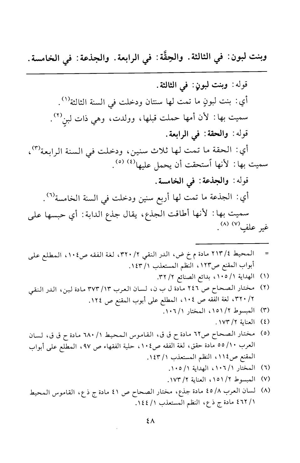 (¬٥) مختار الصحاح ص ٦٢ مادة ح ق ق، القاموس المحيط ١/ ٦٨٠ مادة ح ق ق، لسان العرب ١٠/ ٥٥ مادة حقق، لغة الفقه ص ١٠٤، حلية الفقهاء ص ٩٧، المطلع على أبواب المقنع ص ١١٤، النظم المستعذب ١/ ١٤٣.