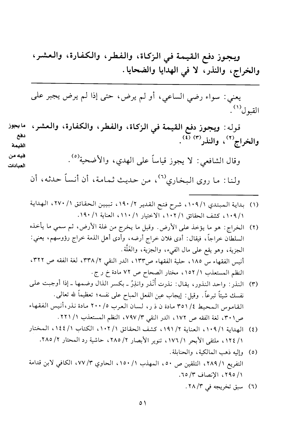 (¬١) بداية المبتدي ١/ ١٠٩، شرح فتح القدير ٢/ ١٩٠، تبيين الحقائق ١/ ٢٧٠، الهداية ١/ ١٠٩، كشف الحقائق ١/ ١٠٢، الاختيار ١/ ١١٠، العناية ١/ ١٩٠.