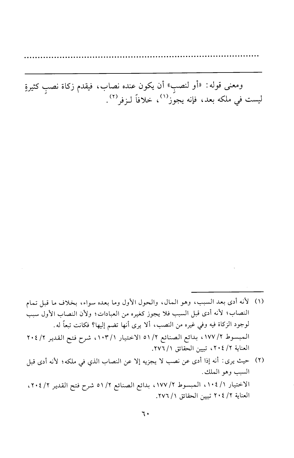 المبسوط ٢/ ١٧٧، بدائع الصنائع ٢/ ٥١ الاختيار ١/ ١٠٣، شرح فتح القدير ٢/ ٢٠٤ العناية ٢/ ٢٠٤، تبيين الحقائق ١/ ٢٧٦.