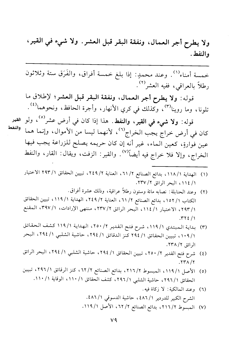 (¬٧) المبسوط ٢/ ٢١٦، بدائع الصنائع ٢/ ٦٢، الأصل ١/ ١١٩.