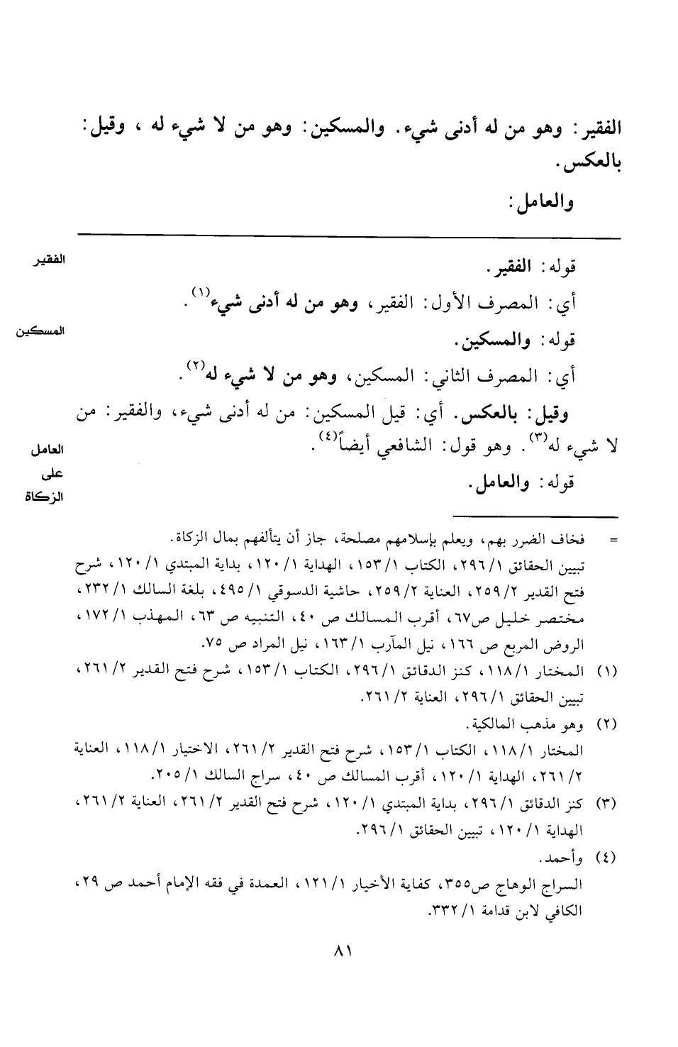 (¬١) المختار ١/ ١١٨، كنز الدقائق ١/ ٢٩٦، الكتاب ١/ ١٥٣، شرح فتح القدير ٢/ ٢٦١، تبيين الحقائق ١/ ٢٩٦، العناية ٢/ ٢٦١.