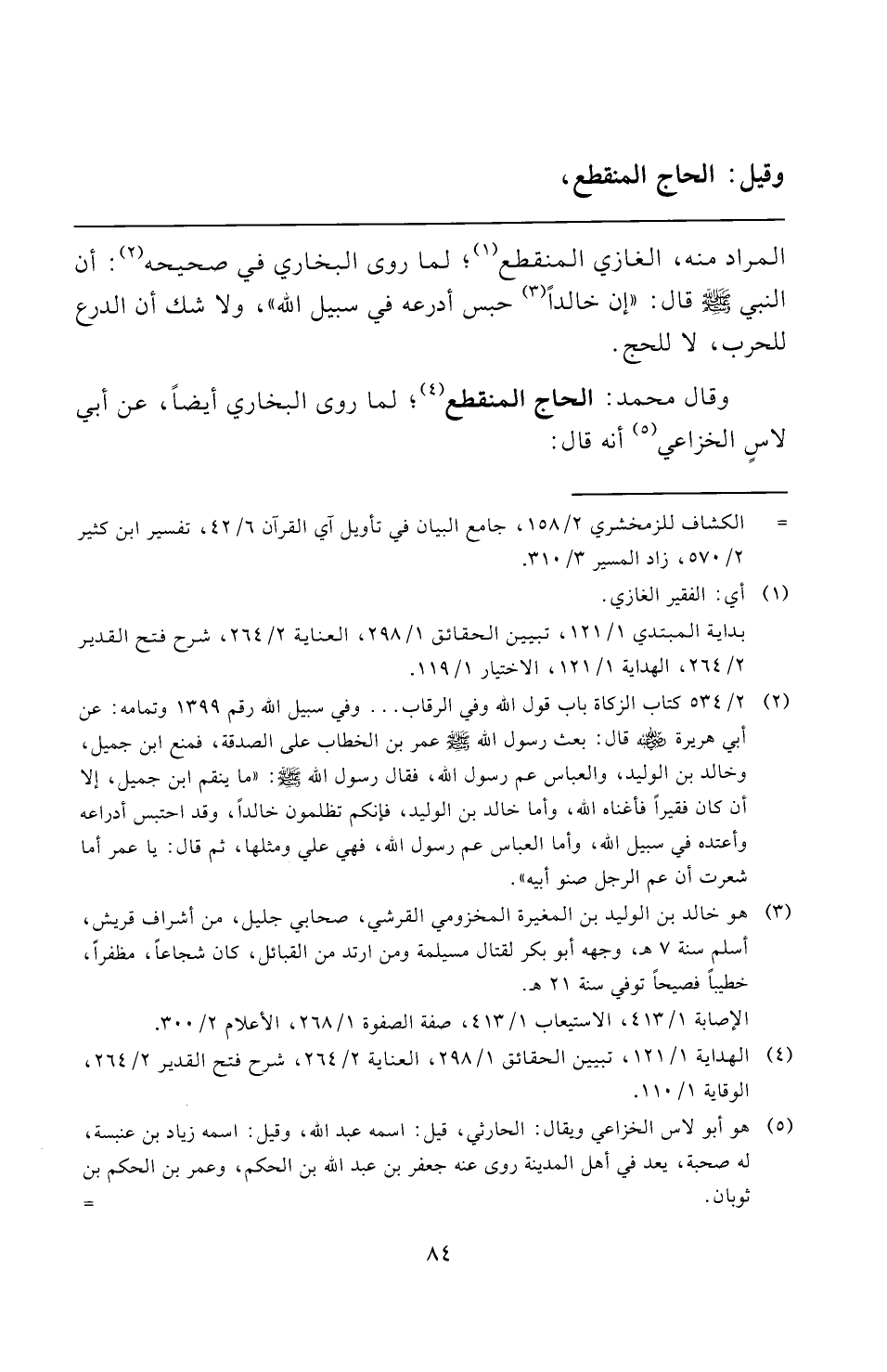 المراد منه، الغازي المنقطع (¬١)؛ لما روى البخاري في صحيحه (¬٢): أن النبي -صلى الله عليه وسلم- قال: "إن خالدًا (¬٣) حبس أدرعه في سبيل الله"، ولا شك أن الدرع للحرب، لا للحج.