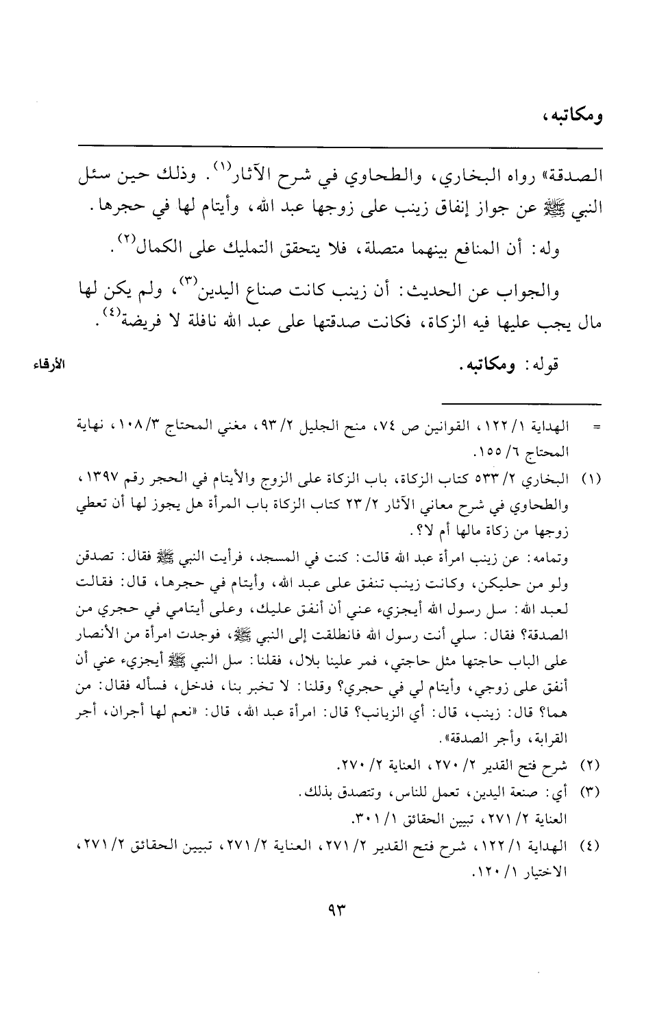 والجواب عن الحديث: أن زينب كانت صناع اليدين (¬٣)، ولم يكن لها مال يجب عليها فيه الزكاة، فكانت صدقتها على عبد الله نافلة لا فريضة (¬٤).