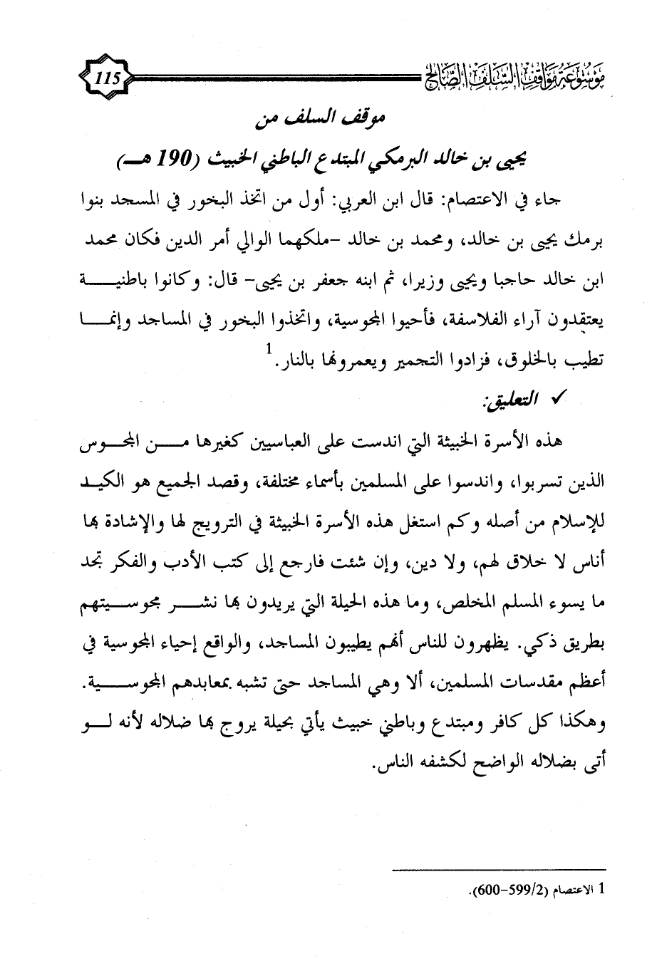 موقف السلف من يحيى بن خالد البرمكي المبتدع الباطني الخبيث (190 هـ)