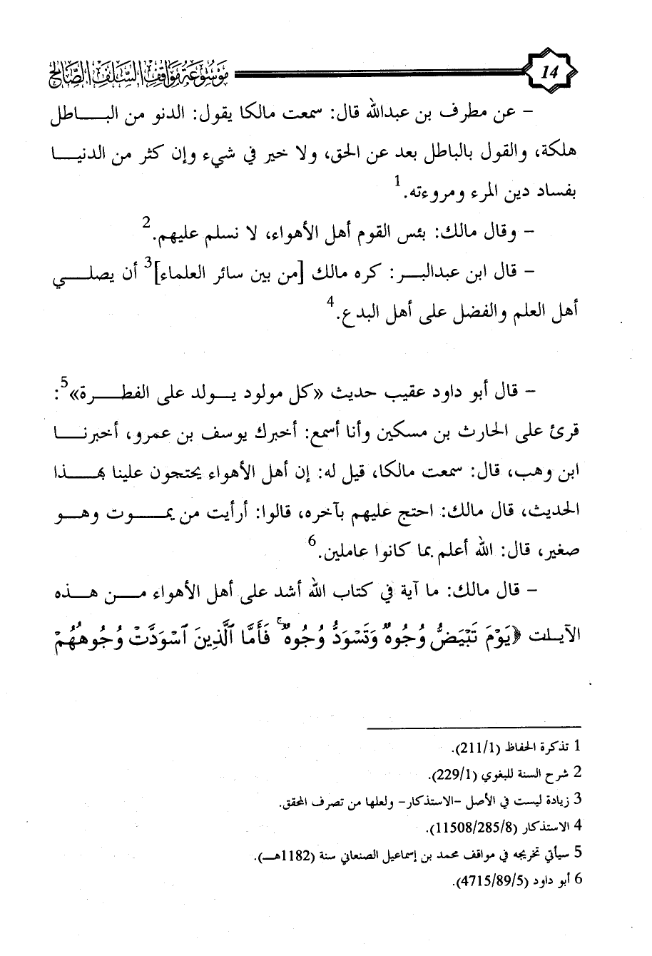 - قال ابن عبد البر: كره مالك [من بين سائر العلماء] (¬3) أن يصلي أهل العلم والفضل على أهل البدع. (¬4)