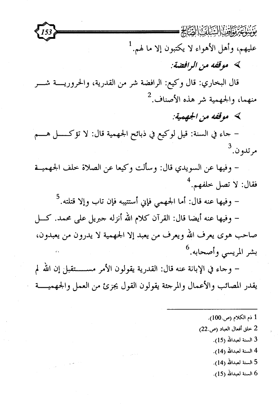 - جاء في السنة: قيل لوكيع في ذبائح الجهمية قال: لا تؤكل هم مرتدون. (¬3)