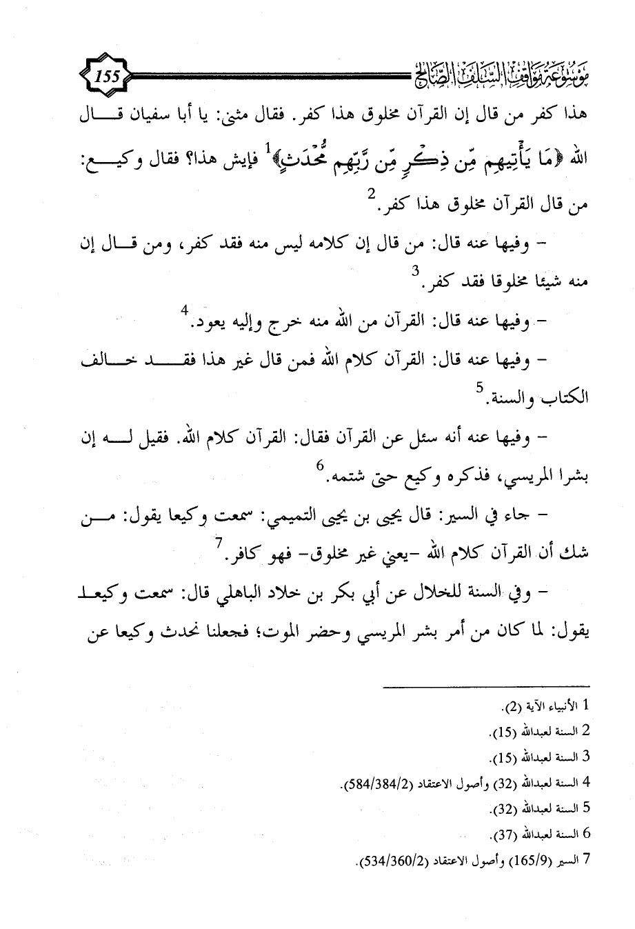 (¬4) السنة لعبد الله (32) وأصول الاعتقاد (2/ 384/584).