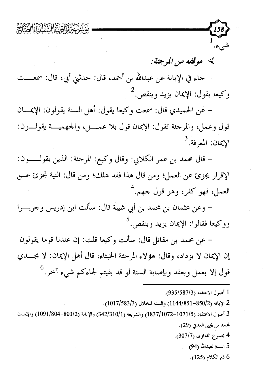 (¬3) أصول الاعتقاد (5/ 1071 - 1072/ 1837) والشريعة (1/ 310/342) والإبانة (2/ 803 - 804/ 1091) والإيمان لمحمد بن يحيى العدني (29).