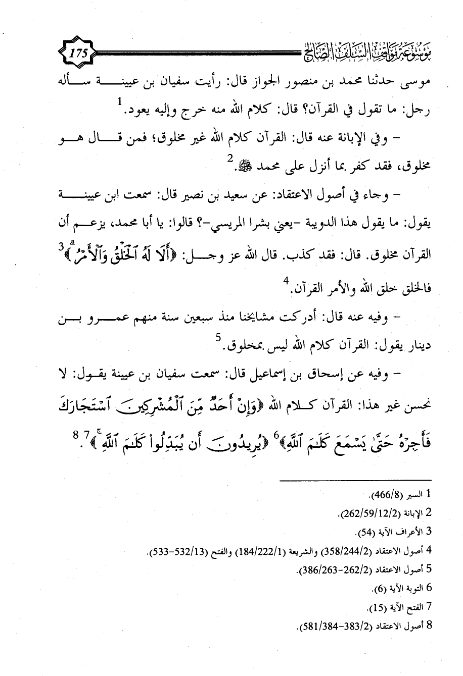 (¬8) أصول الاعتقاد (2/ 383 - 384/ 581).