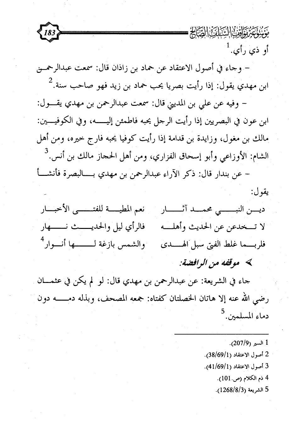 - عن بندار قال: ذكر الآراء عبد الرحمن بن مهدي بالبصرة فأنشأ يقول: