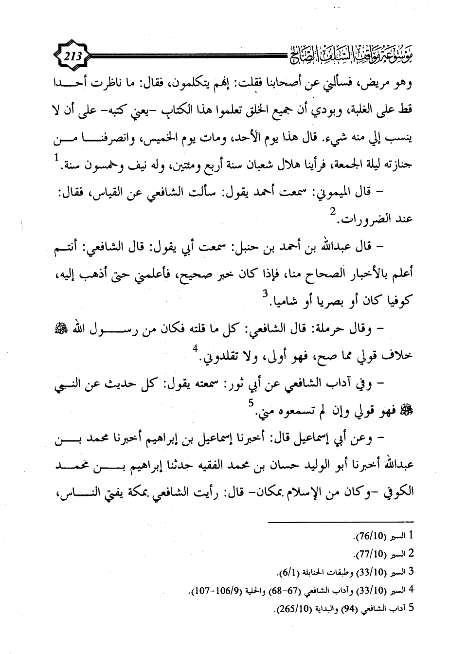 (¬4) السير (10/ 33) وآداب الشافعي (67 - 68) والحلية (9/ 106 - 107).