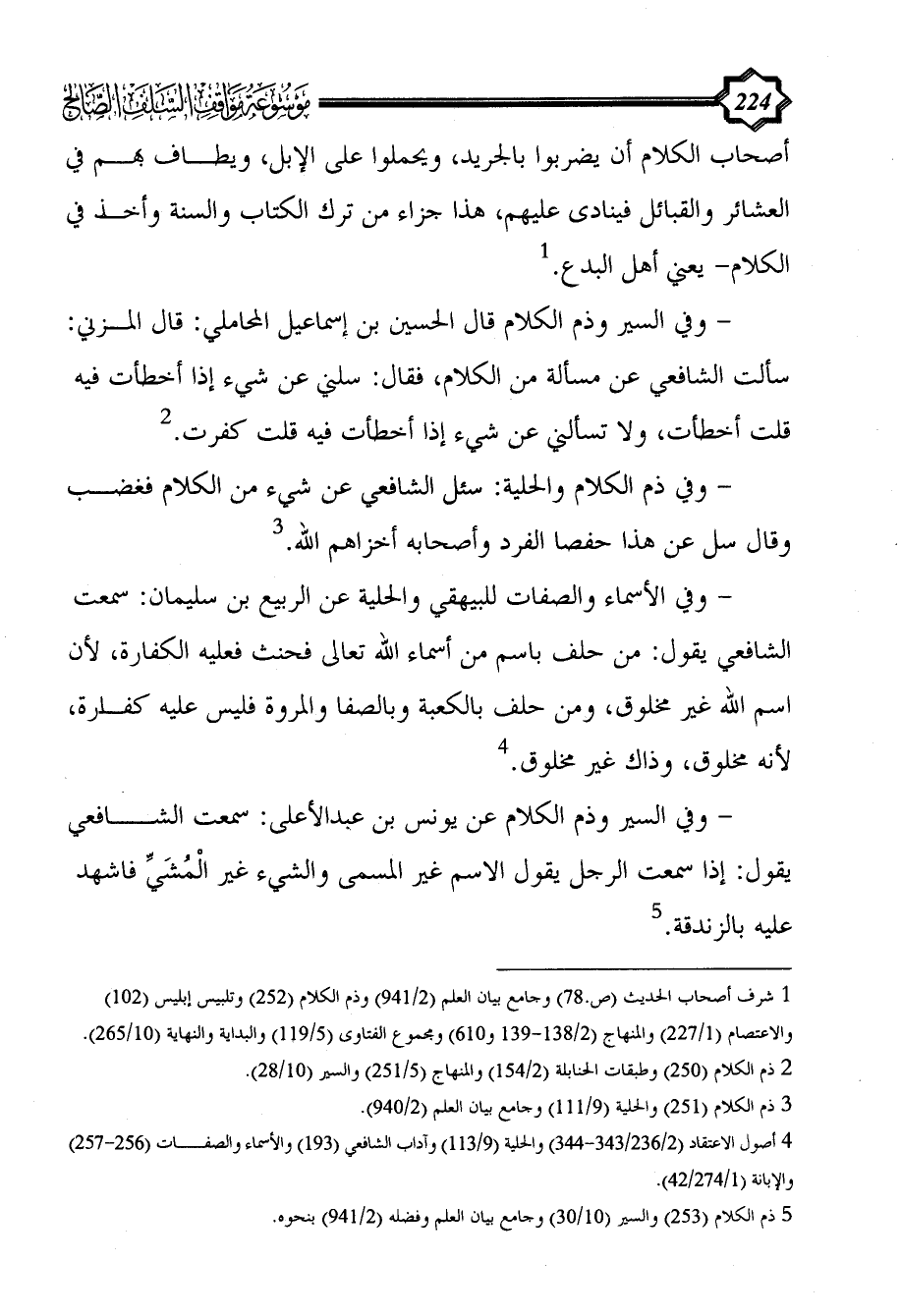 (¬4) أصول الاعتقاد (2/ 236/343 - 344) والحلية (9/ 113) وآداب الشافعي (193) والأسماء والصفات (256 - 257) والإبانة (1/ 274/42).