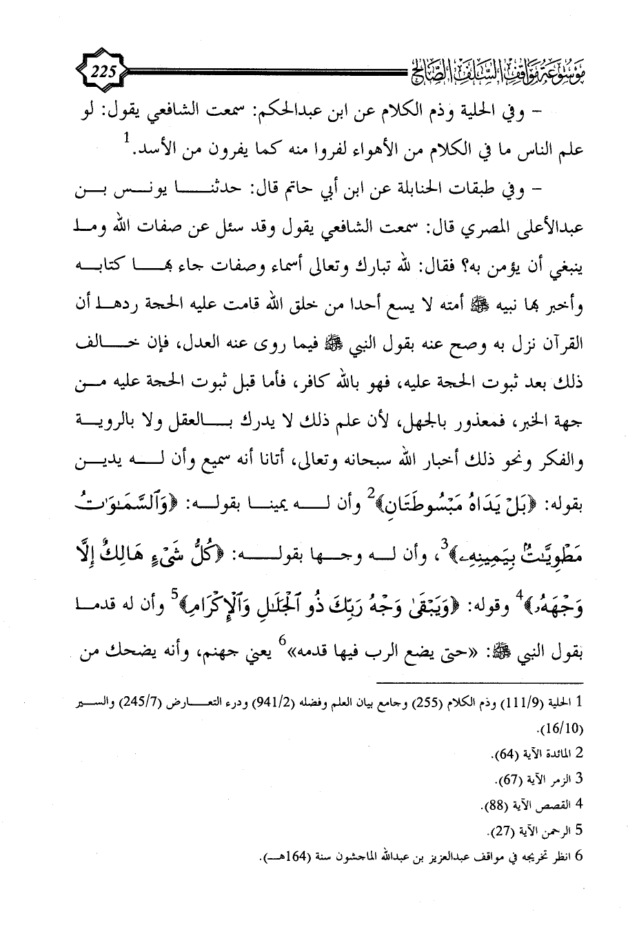 (¬1) الحلية (9/ 111) وذم الكلام (255) وجامع بيان العلم وفضله (2/ 941) ودرء التعارض (7/ 245) والسير (10/ 16).