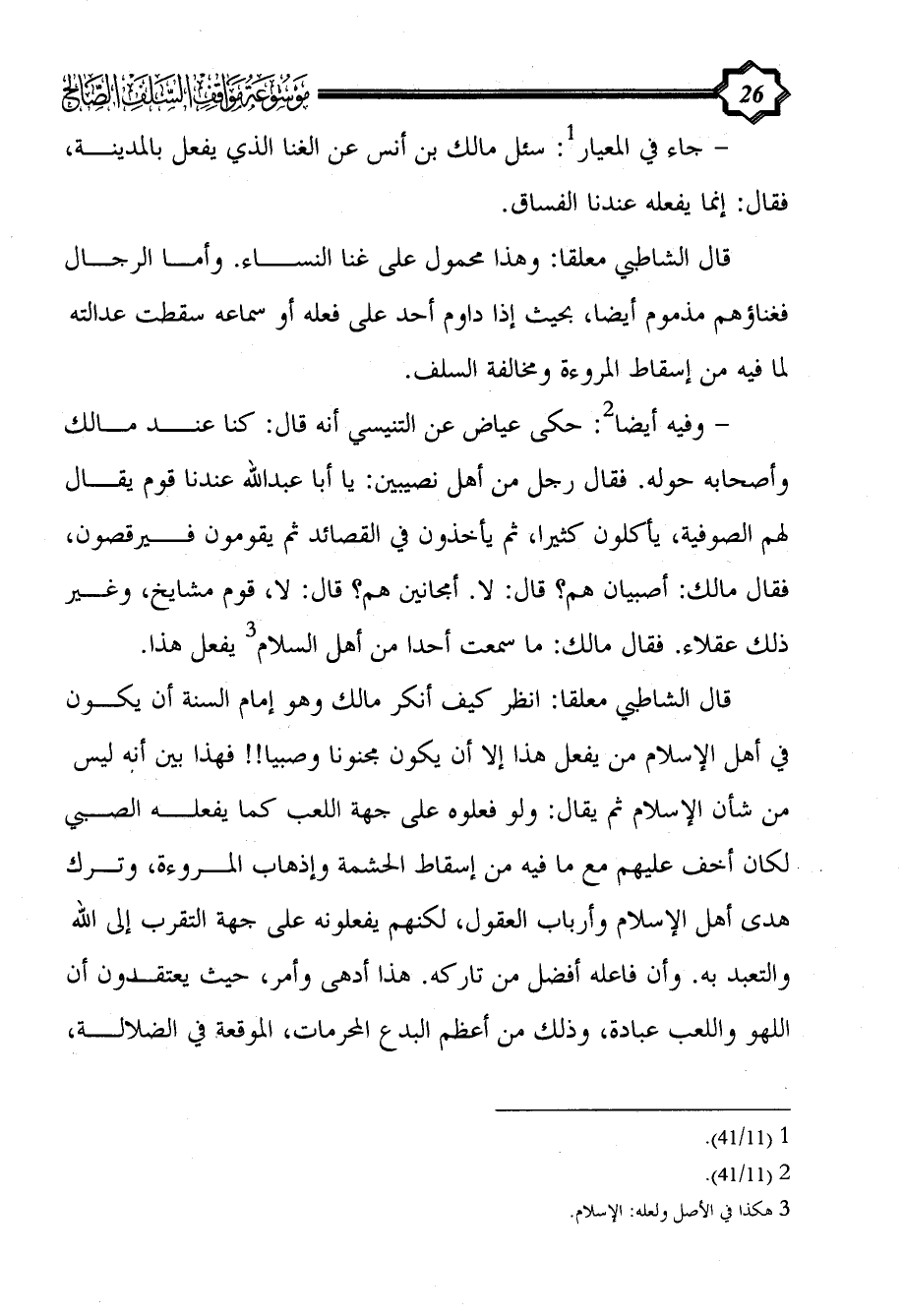 - جاء في المعيار (¬1): سئل مالك بن أنس عن الغنا الذي يفعل بالمدينة، فقال: إنما يفعله عندنا الفساق.