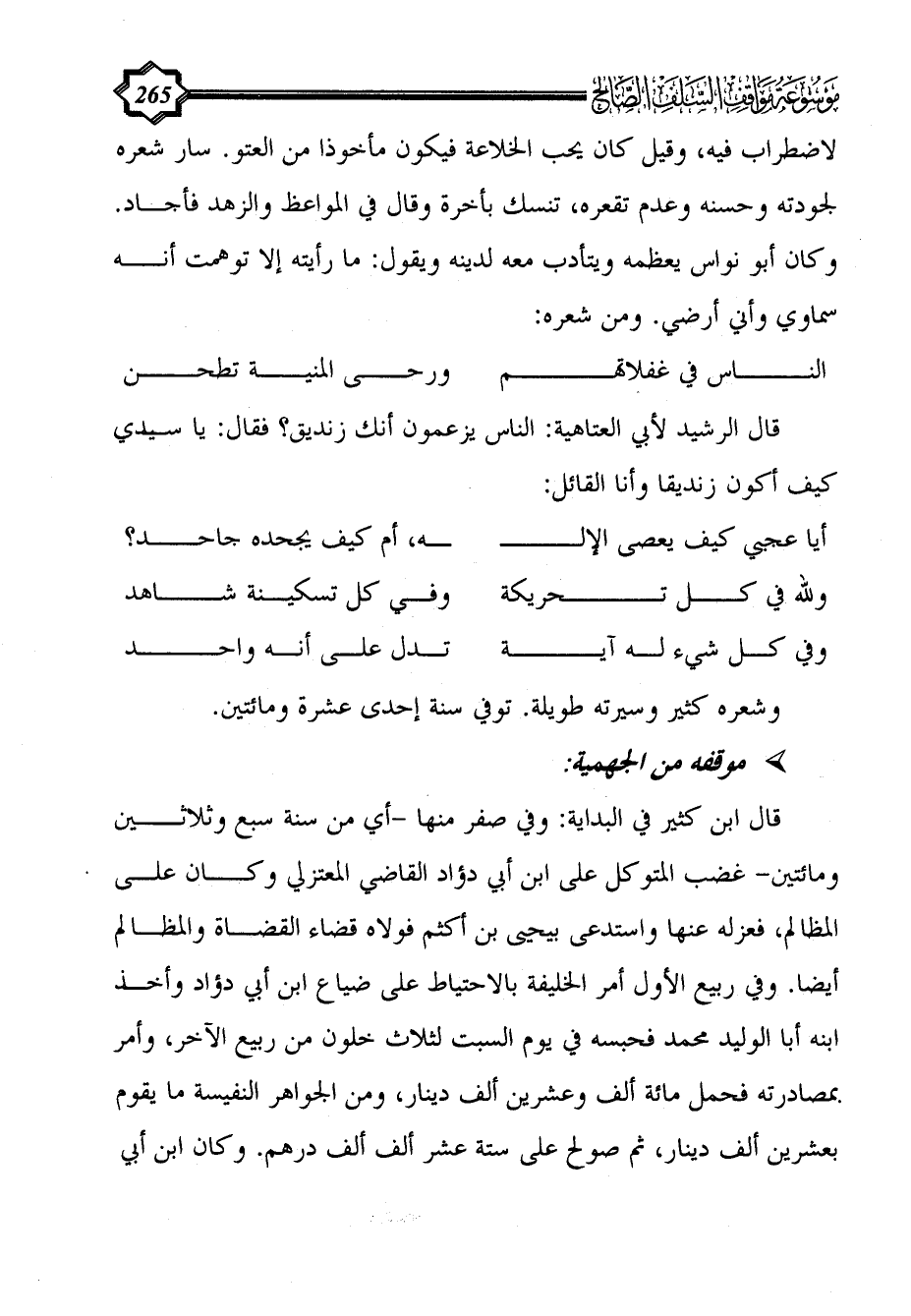 قال الرشيد لأبي العتاهية: الناس يزعمون أنك زنديق؟ فقال: يا سيدي كيف أكون زنديقا وأنا القائل: