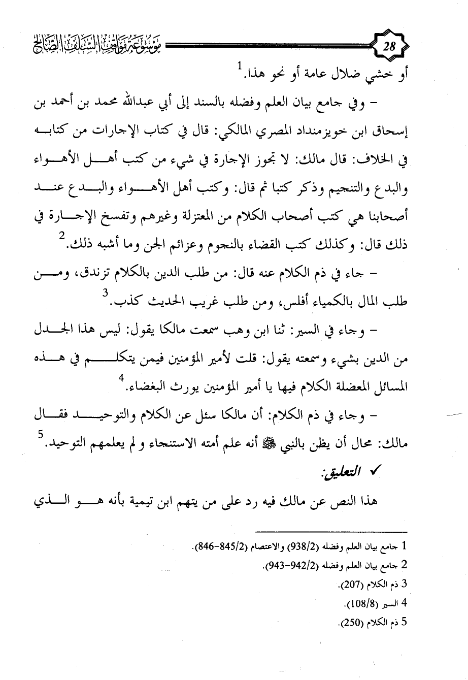 هذا النص عن مالك فيه رد على من يتهم ابن تيمية بأنه هو الذي