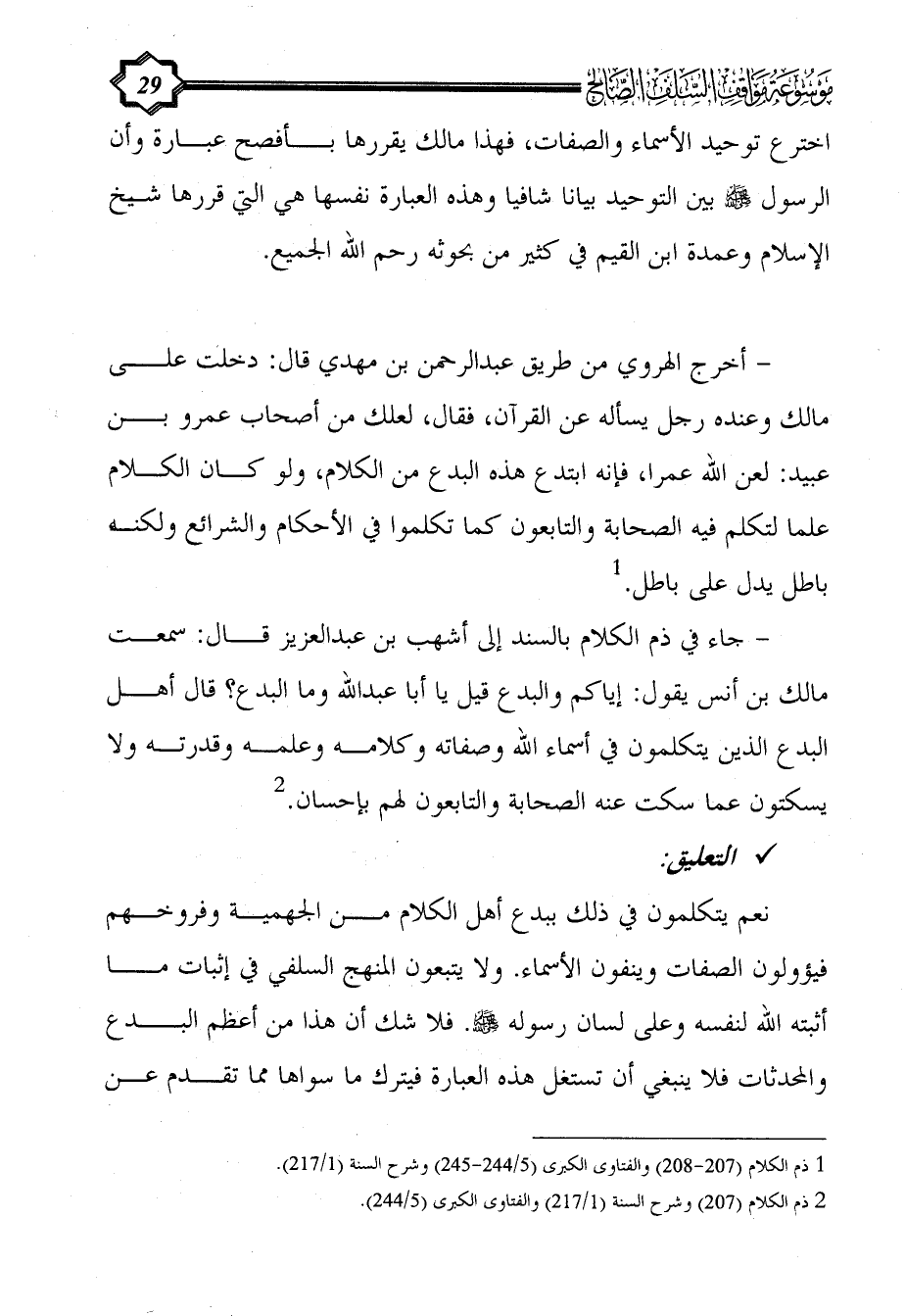(¬2) ذم الكلام (207) وشرح السنة (1/ 217) والفتاوى الكبرى (5/ 244).