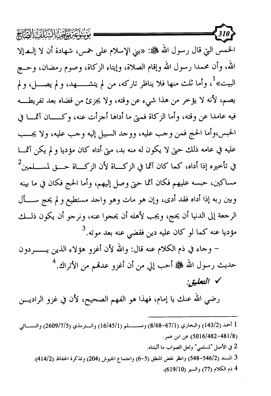 (¬1) أحمد (2/ 143) والبخاري (1/ 67 - 68/ 8) ومسلم (1/ 45/16) والترمذي (5/ 7/2609) والنسائي (8/ 481 - 482/ 5016) عن ابن عمر.