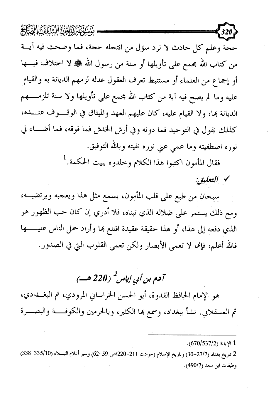 (¬2) تاريخ بغداد (7/ 27 - 30) وتاريخ الإسلام (حوادث 211 - 220/ص.59 - 62) وسير أعلام النبلاء (10/ 335 - 338) وطبقات ابن سعد (7/ 490).