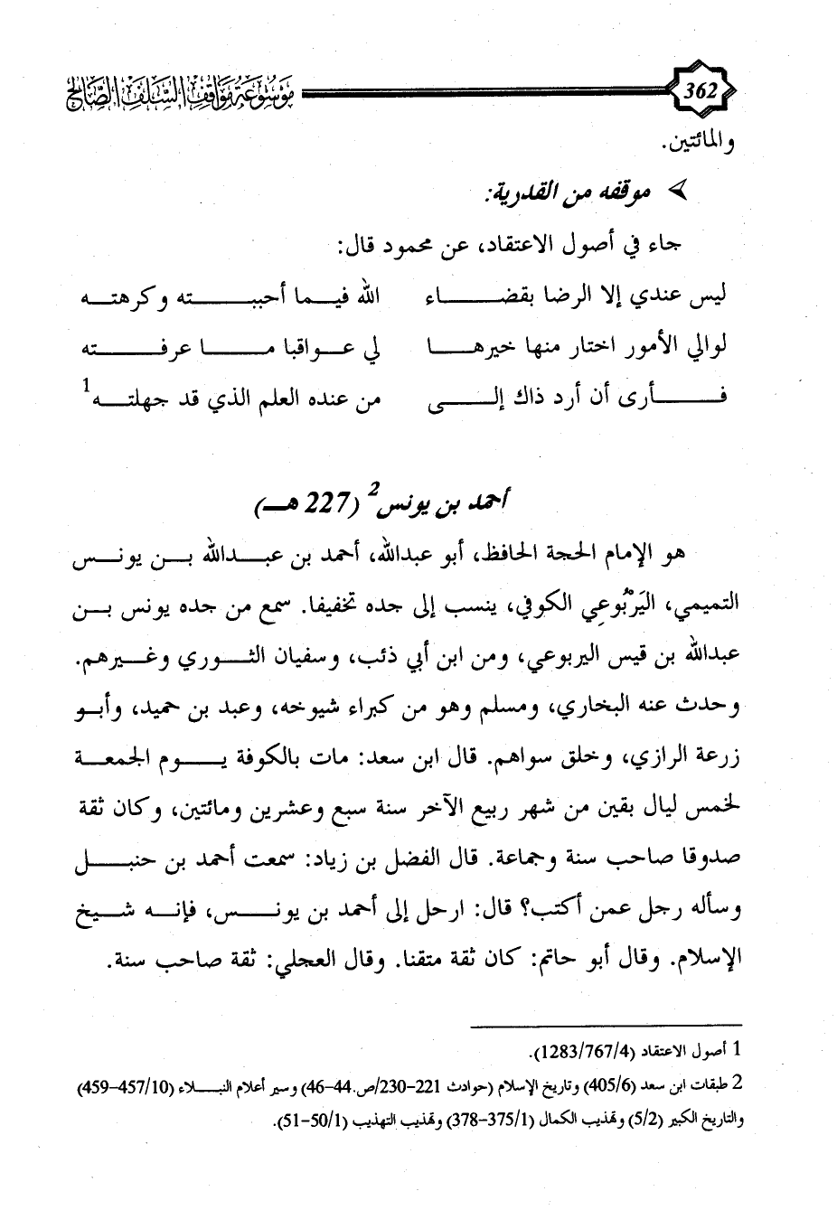 (¬2) طبقات ابن سعد (6/ 405) وتاريخ الإسلام (حوادث 221 - 230/ص.44 - 46) وسير أعلام النبلاء (10/ 457 - 459) والتاريخ الكبير (2/ 5) وتهذيب الكمال (1/ 375 - 378) وتهذيب التهذيب (1/ 50 - 51).
