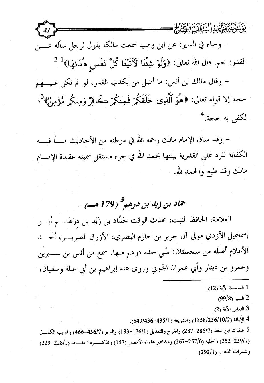 - وقد ساق الإمام مالك رحمه الله في موطئه من الأحاديث ما فيه الكفاية للرد على القدرية بينتها بحمد الله في جزء مستقل سميته عقيدة الإمام مالك وقد طبع والحمد لله.
