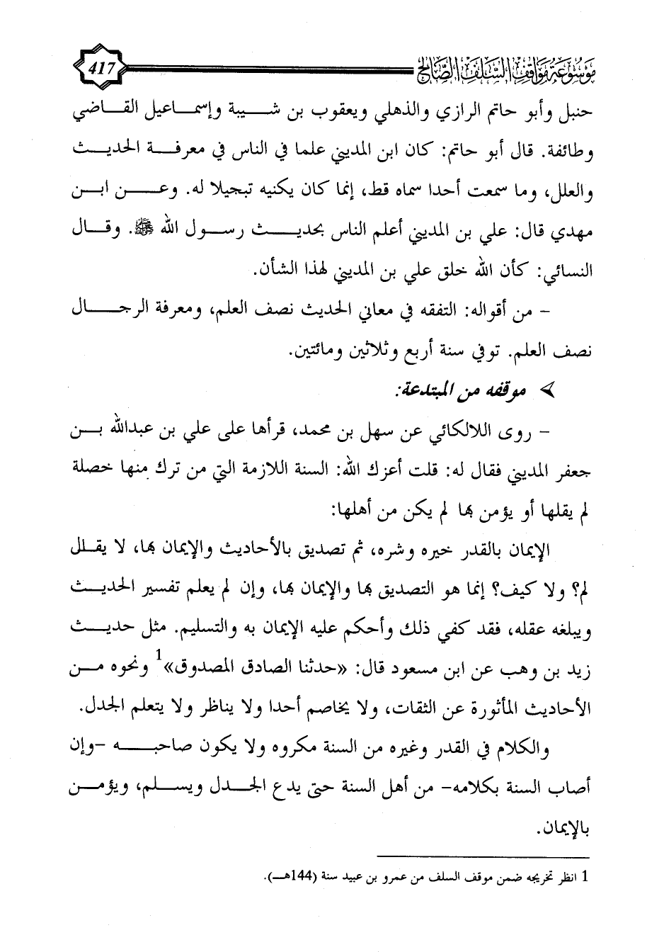 (¬1) انظر تخريجه ضمن موقف السلف من عمرو بن عبيد سنة (144هـ).