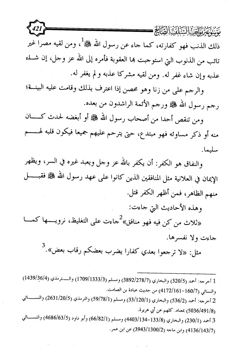 (¬3) أحمد (1/ 230) والبخاري (8/ 133 - 134/ 4403) ومسلم (1/ 82/66) وأبو داود (5/ 63/4686) والنسائي (7/ 143/4136) وابن ماجه (2/ 1300/3943) عن ابن عمر.