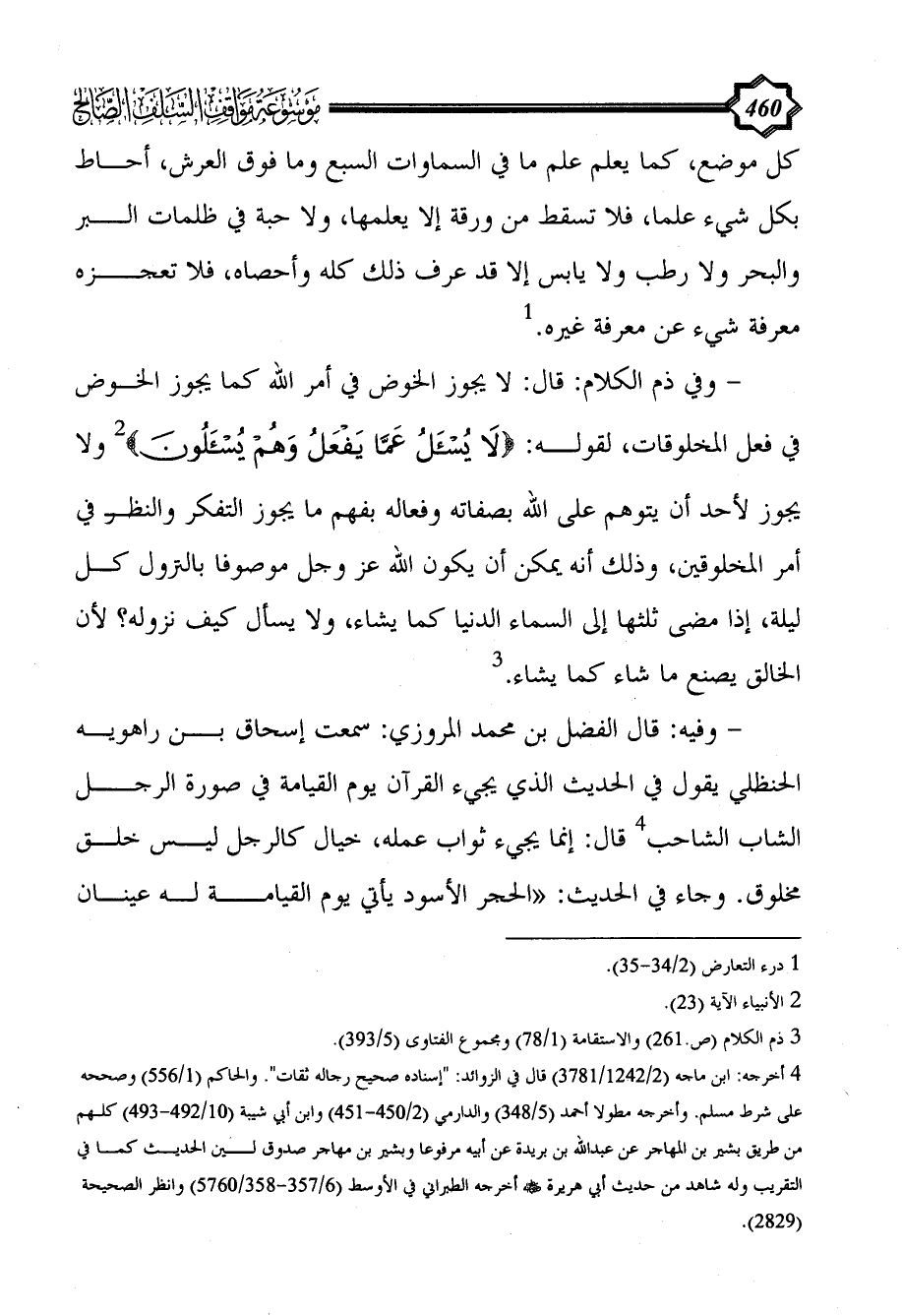 (¬3) ذم الكلام (ص.261) والاستقامة (1/ 78) ومجموع الفتاوى (5/ 393).