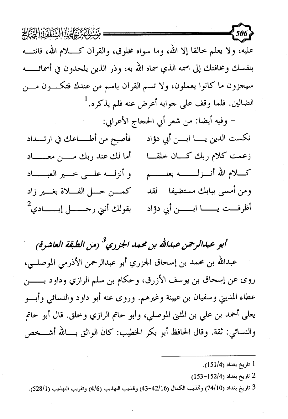 أبو عبد الرحمن عبد الله بن محمد الجزري (¬3) (من الطبقة العاشرة)