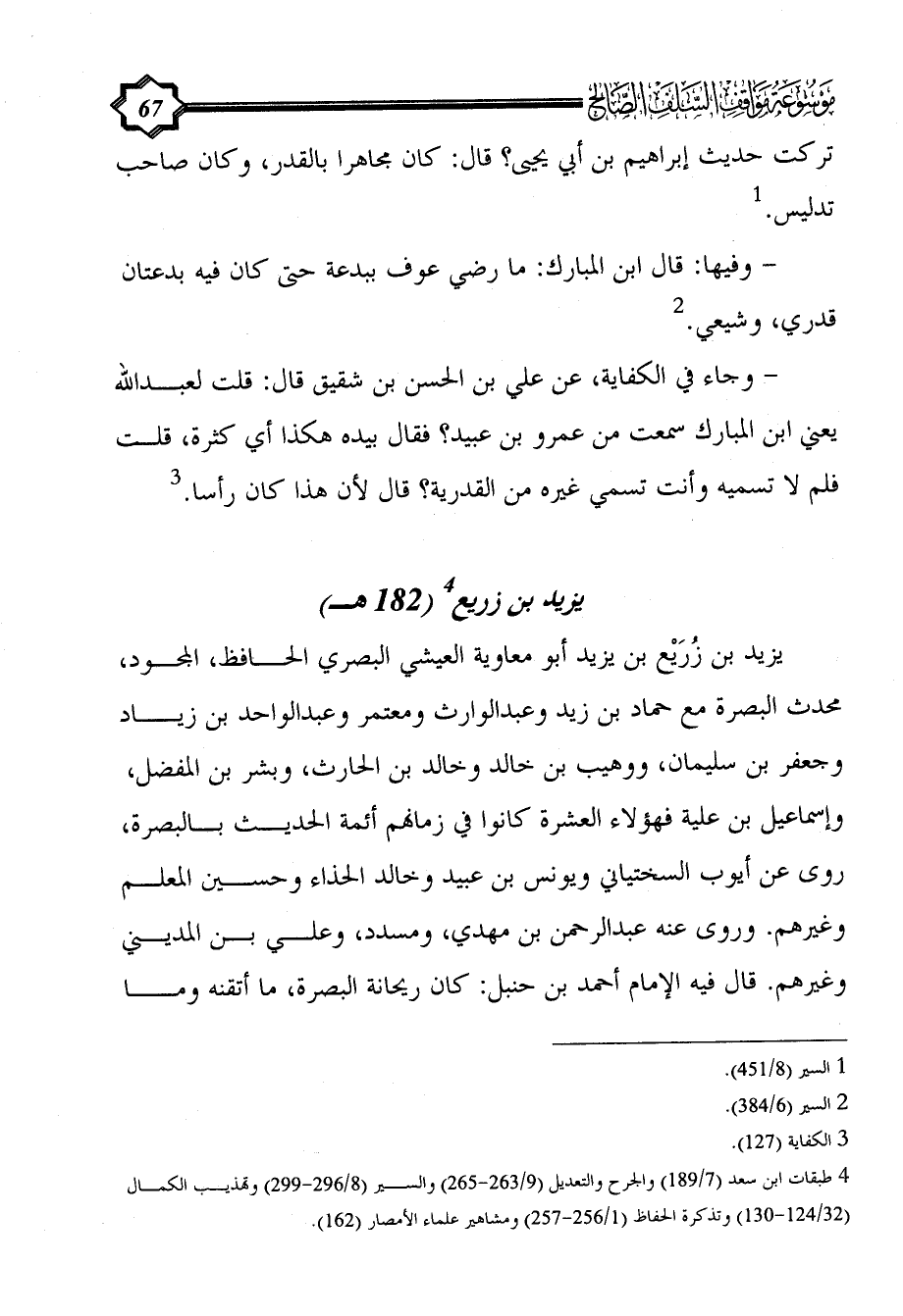 (¬4) طبقات ابن سعد (7/ 189) والجرح والتعديل (9/ 263 - 265) والسير (8/ 296 - 299) وتهذيب الكمال (32/ 124 - 130) وتذكرة الحفاظ (1/ 256 - 257) ومشاهير علماء الأمصار (162).
