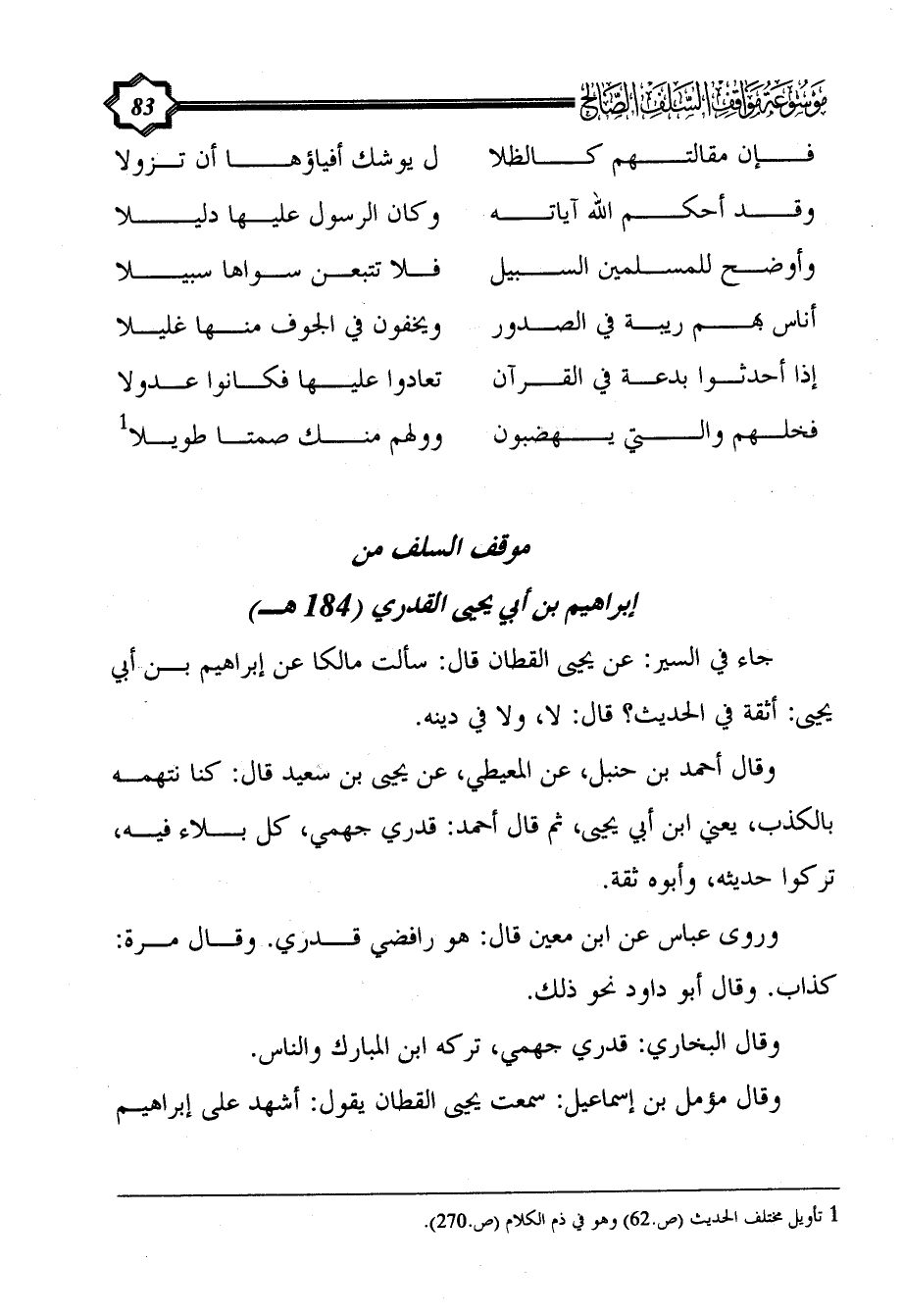 موقف السلف من إبراهيم بن أبي يحيى القدري (184 هـ)