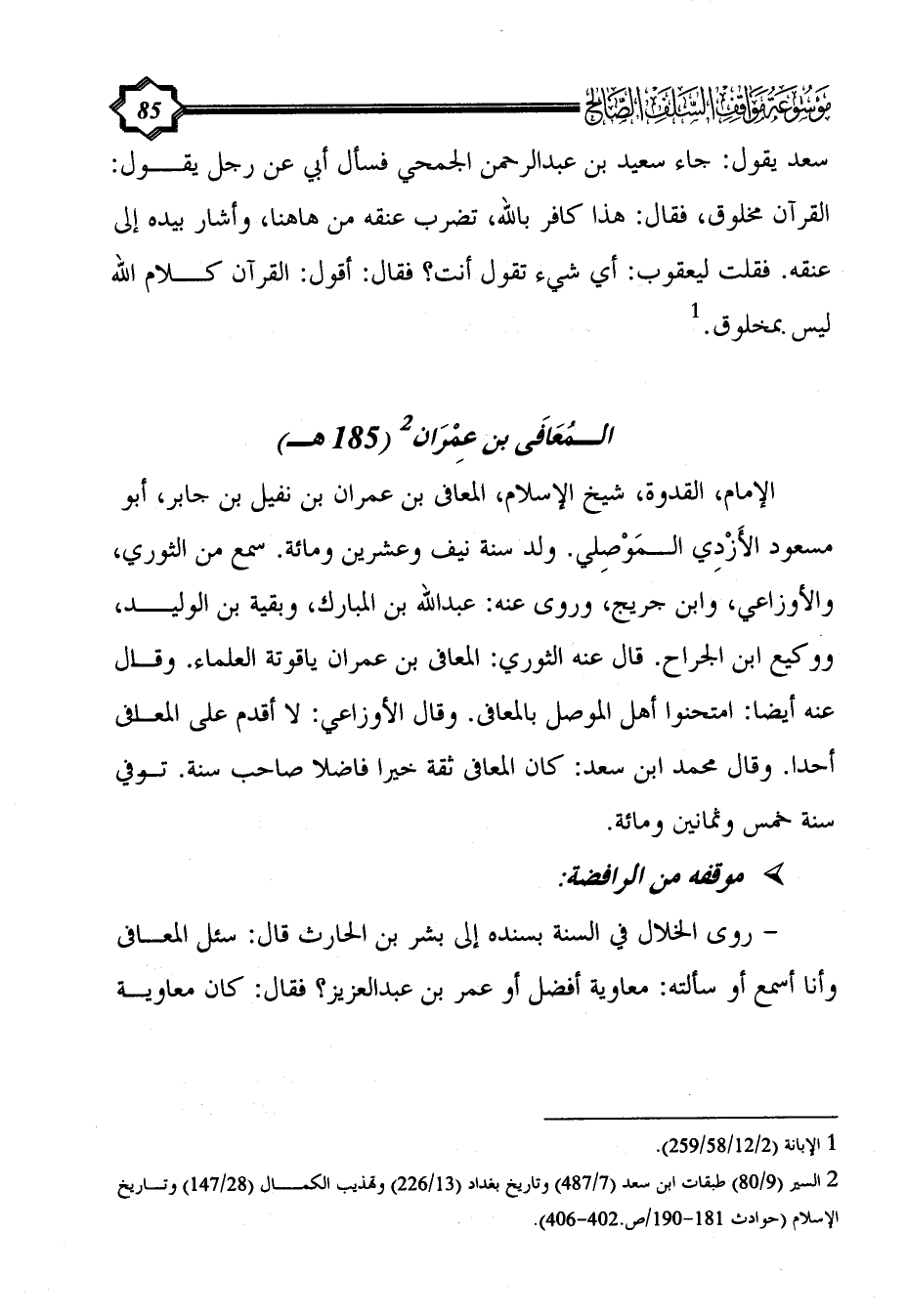 (¬2) السير (9/ 80) طبقات ابن سعد (7/ 487) وتاريخ بغداد (13/ 226) وتهذيب الكمال (28/ 147) وتاريخ الإسلام (حوادث 181 - 190/ص.402 - 406).